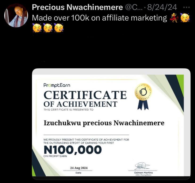 On August 2024, I made my FIRST N100,000 from Affiliate Marketing.