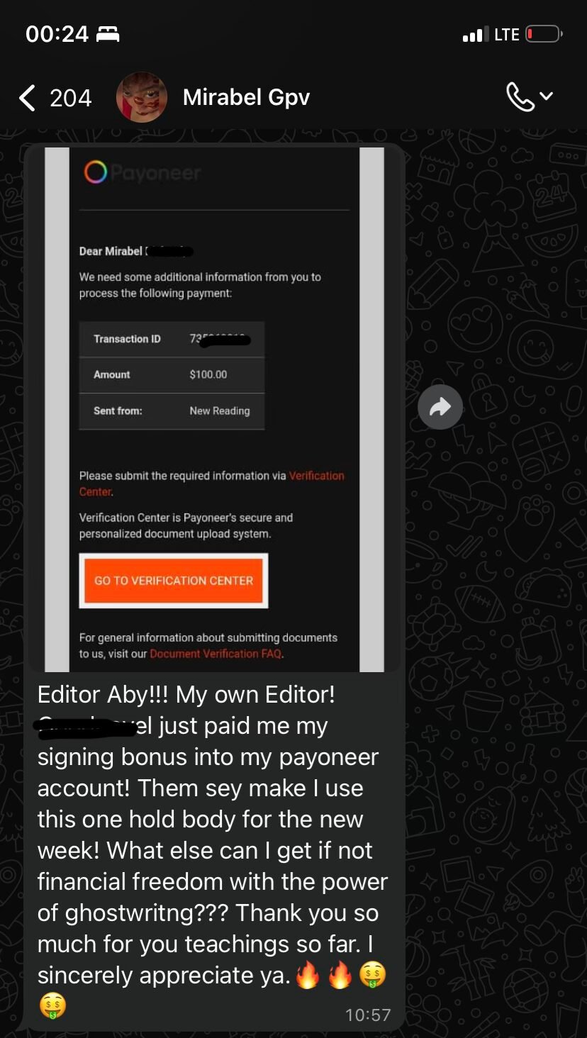 The Ghostwriting Earning Vault is NOT filled with motivation and empty promises. It’s a clear roadmap on how to go from beginner to pro within a few months.