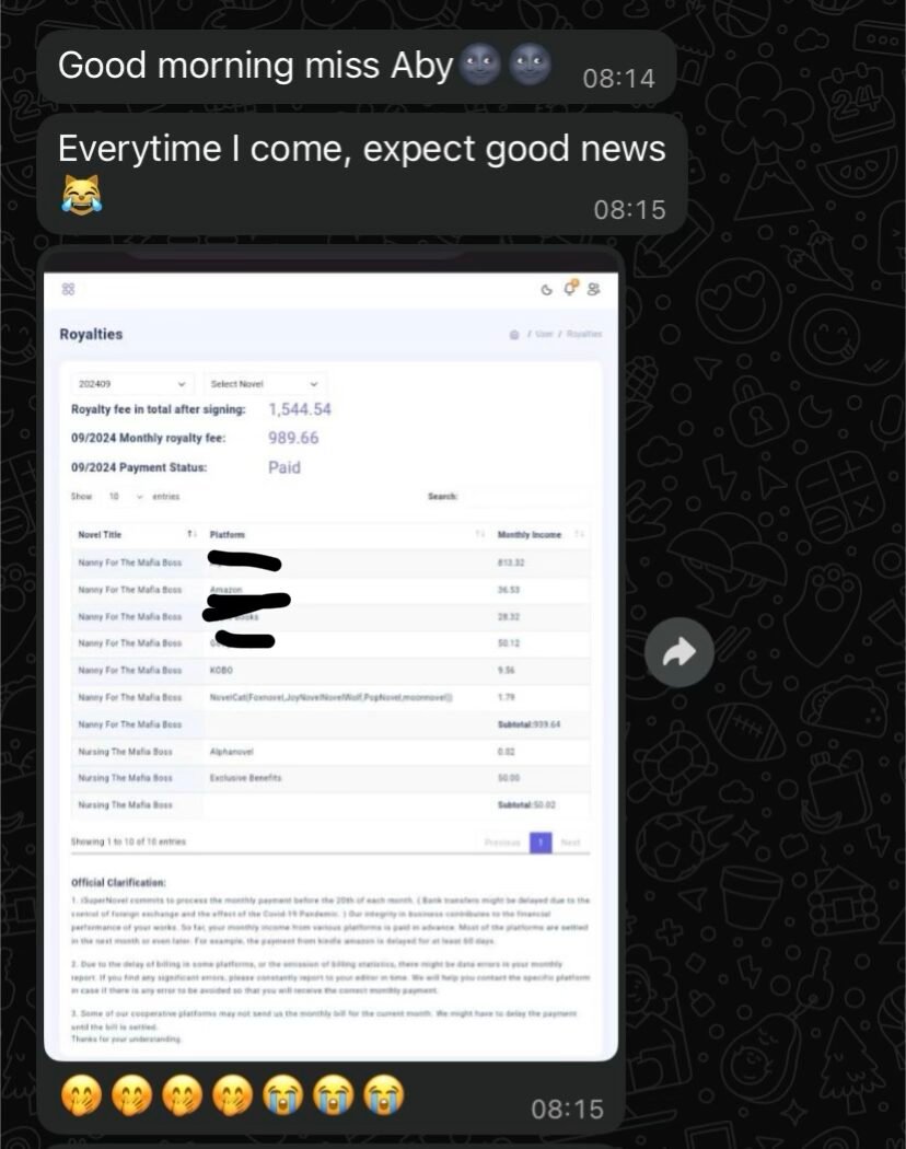 She earns $2,725.54 from a single ghostwriting contract