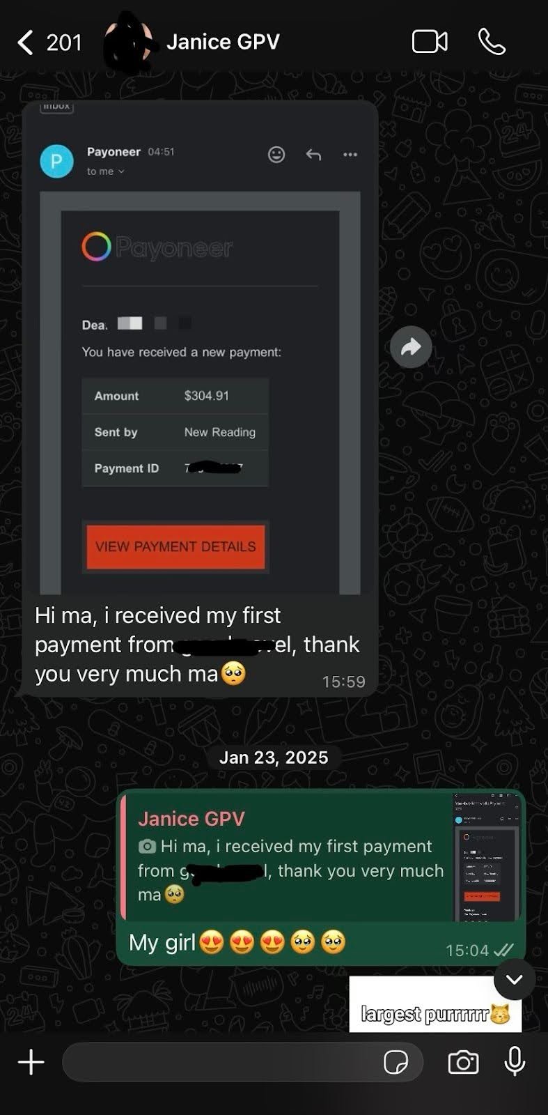 Janice just her first payment worth over $300